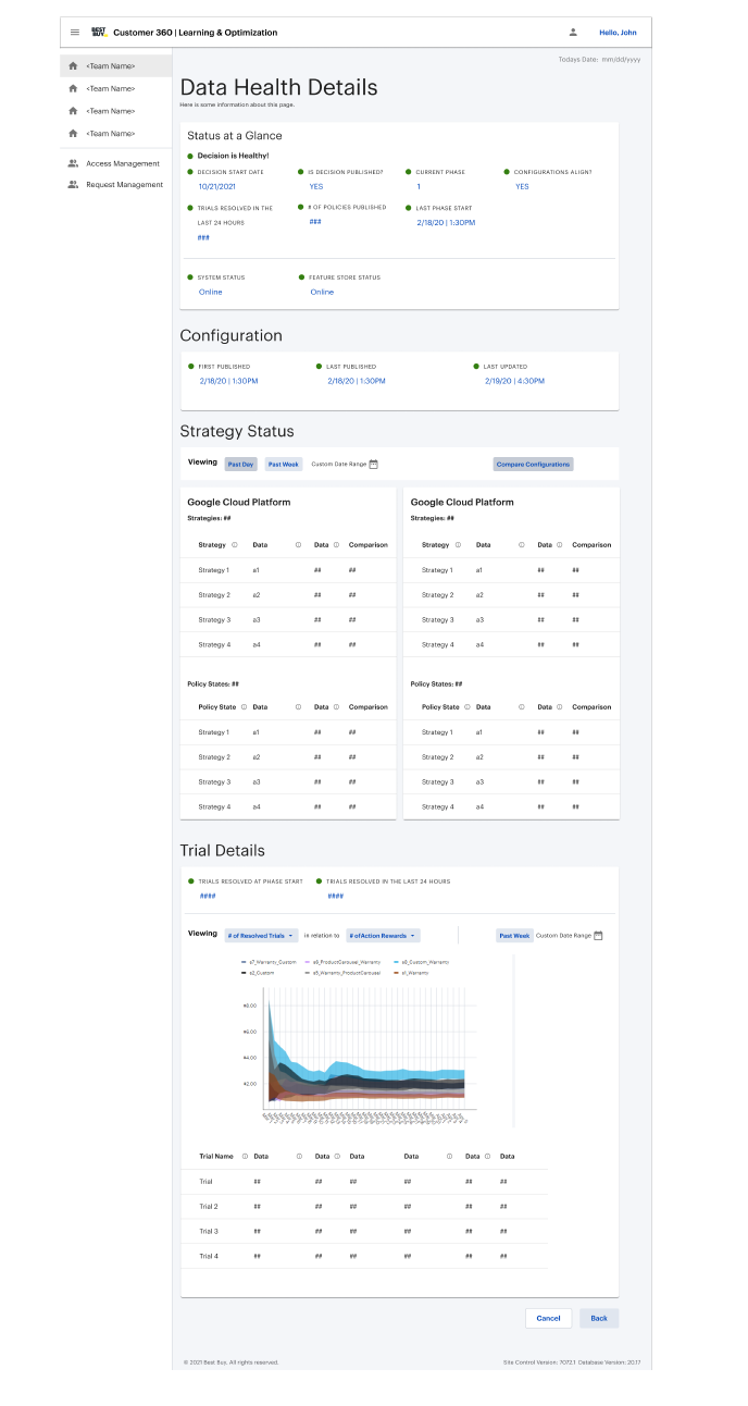 Our engagement concluded with a formal Design Brief. While discussions were fruitful, we continued to refine data metrics hierarchy and display requirements for ML Test (Decision) data health.